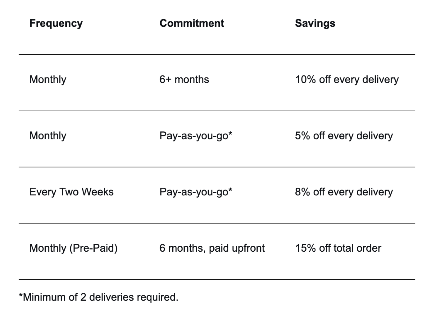 You remain in complete control of your subscription. Easily skip, reschedule, edit your bag, or cancel deliveries anytime—all from your online account.